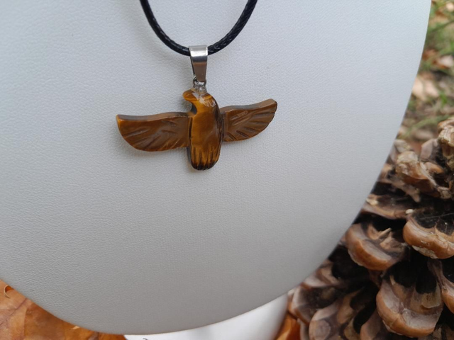 Pendentif Oeil du tigre en forme d'AIGLE avec son bélière et son cordon en polyester