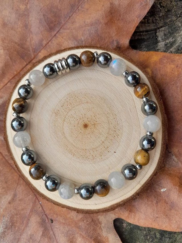 Bracelet argenté Labradorite Oeil du tigre Hématite