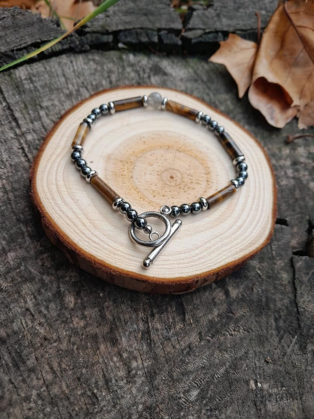 Bracelet argenté Oeil du tigre hématite